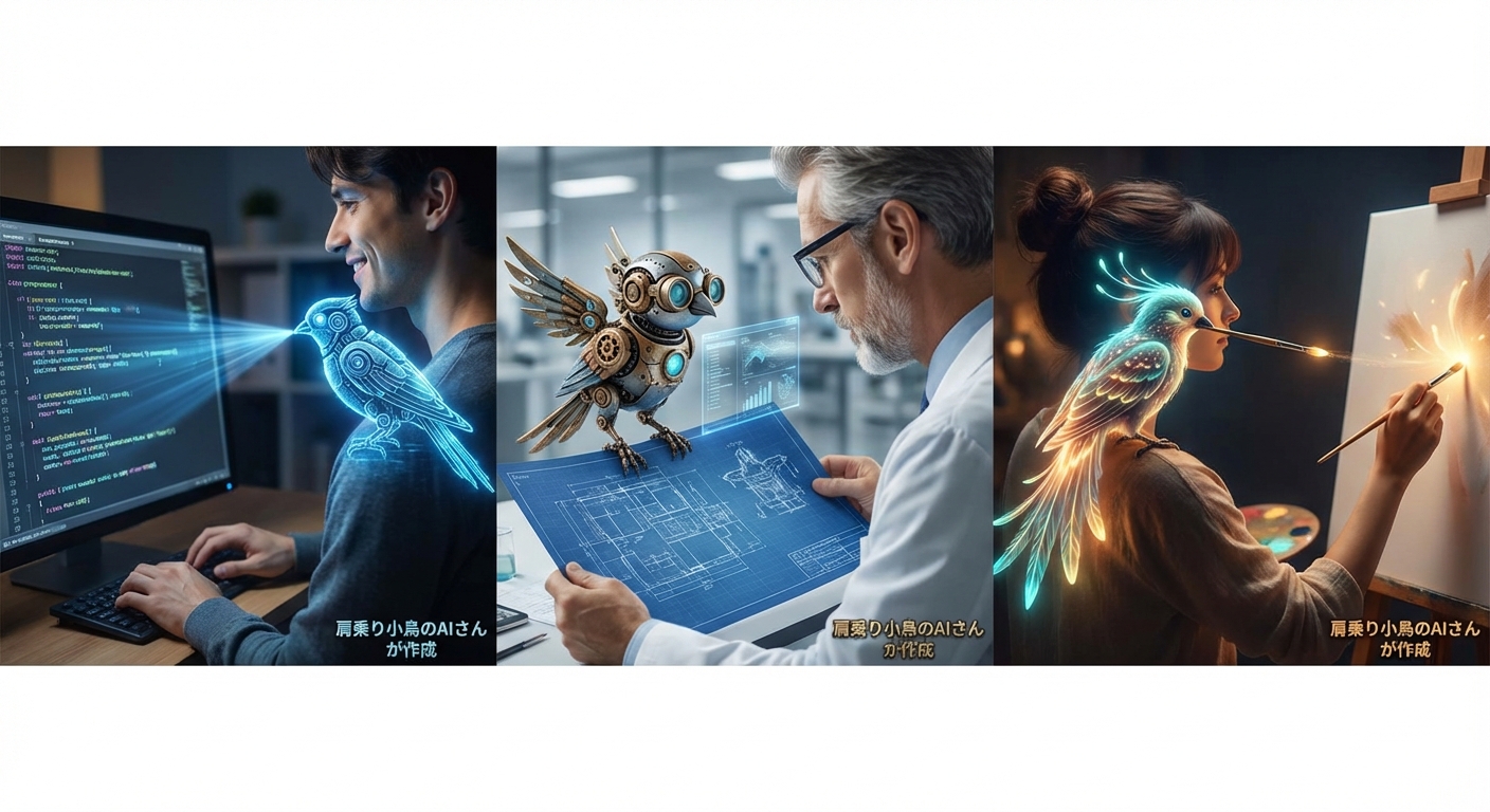 OUTPUTクリックで拡大肩乗り小鳥のAIさんが作成success4日前(22s)by cmlaibrtj003bs6014ev42ta1gemini-3-pro-image-preview/ 60 COBI返信する共有する
