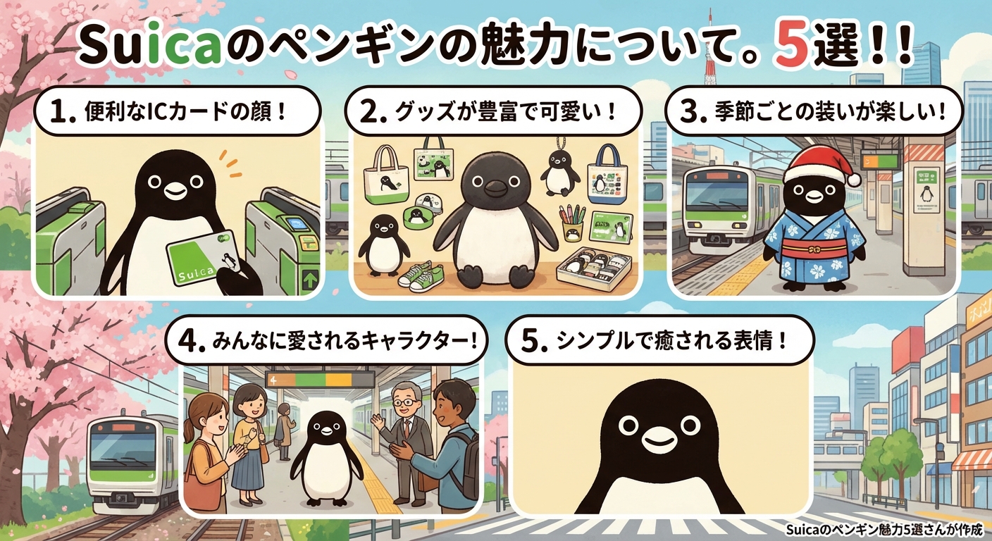 OUTPUTクリックで拡大Suicaのペンギン魅力5選さんが作成success5日前(25s)by cml9ggugs001rs6014a8l5npjgemini-3-pro-image-preview/ 60 COBI返信する共有する