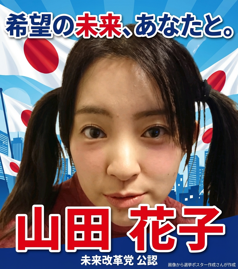 INPUTOUTPUTクリックで拡大画像から選挙ポスター作成さんが作成success4日前(21s)by yyanagisawagemini-3-pro-image-preview/ 150 COBI返信する共有する